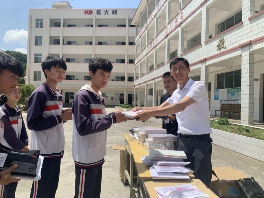The return visit team, together with Principal Luo, distributed school supplies to outstanding student representatives, encouraging everyone to study hard, and allowing the children to feel the warmth and care from the Kingdom family.